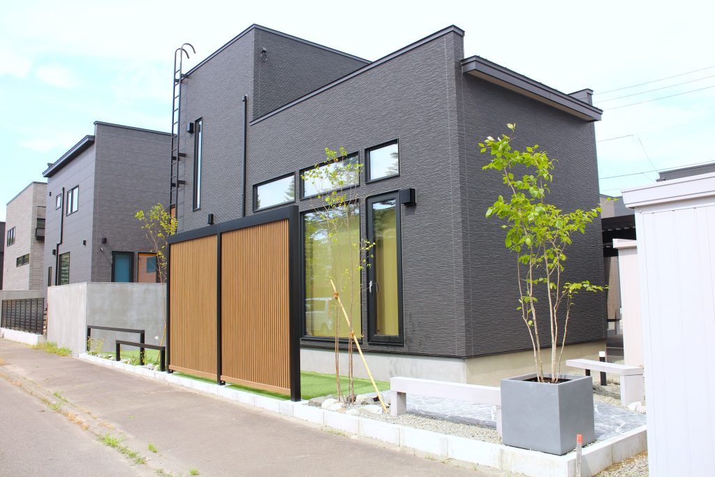 シンプルかつ洗練された外観の住宅に調和するよう、スタイリッシュな素材とラインで構成された外構を提案しました。人工芝と植栽を入れ、毎日の暮らしに安らぎを添えています。 Gフレームの設置で空間を立体的に間取り、外構全体に奥行きを与えるとともに、存在感を感じさせつつも住まいと調和させました。存在感がありながらも圧迫感を感じさせず、お庭に軽やかな印象を与えています。家族のくつろぎの場として、そしてお客様を迎える上質なお庭として機能性と美しさを兼ね備えた外構に仕上げました。