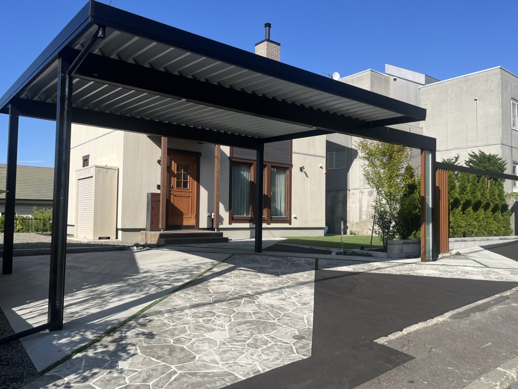 【After】梁を伸ばしたカーポートとリレーリアの一体感が存在感を強調し、外構全体の印象に統一感と奥行きを与えました。