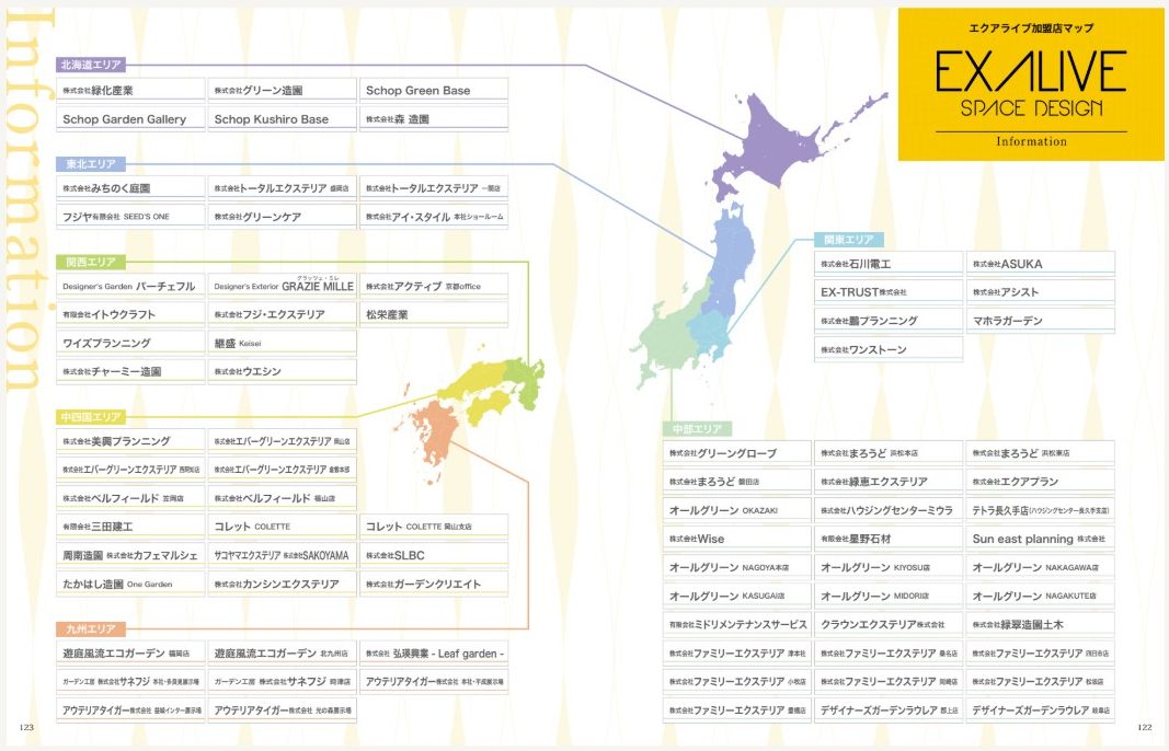 エクアライブはこのように全国各地で活躍しているエクステリアや外構専門店、造園業者他で創られたエクステリア業界では勇逸の法人組織となります。